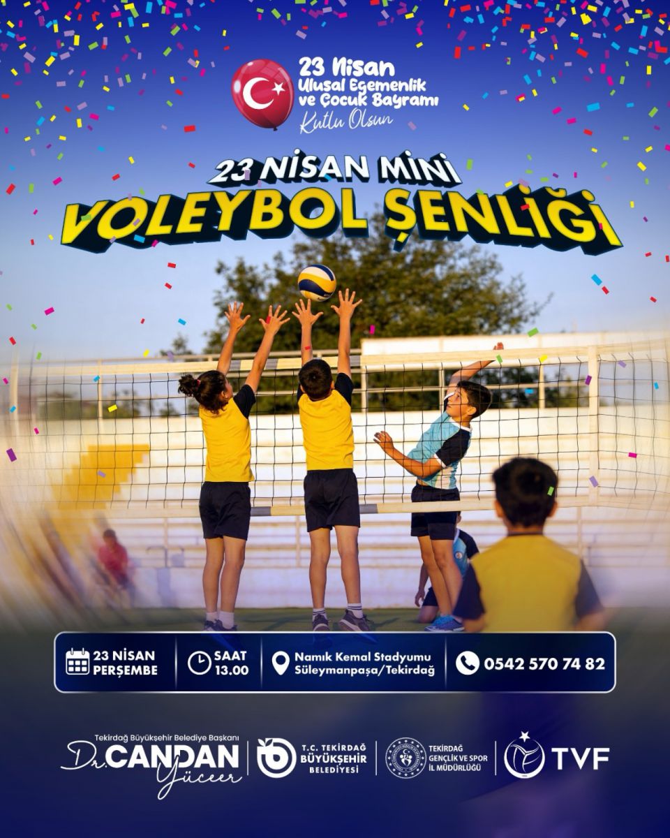 Şölenin futbol ayağı ise 23 Nisan günü saat 13.00’te Muratlı Spor Kompleksi’nde start alacak. 9-14 yaş arası çocukların 8’erli takımlar halinde sahaya çıkacağı turnuvada 12 kişilik kadrolar kıyasıya mücadele edecek. Futbol için son başvuru tarihi 18 Nisan olarak belirlenirken, yüzme tutkunları Çerkezköy Atatürk Yarı Olimpik Yüzme Havuzu’nda bir araya gelecek. 7-8 yaştan başlayarak 13 yaş üzerine kadar farklı kategorilerde düzenlenen yüzme yarışları, saat 11.00’deki ve 15.00’teki seanslarıyla gerçekleştirilecek. Bayrak yarışlarının heyecanıyla renklenen havuzda sporcular, ferdi ve takım bazında puan toplamak için kulaç atacak. Süleymanpaşa’da bulunan Namık Kemal Stadı’nda gerçekleştirilecek voleybol branşında ise 9-12 yaş grubundaki çocuklar için 23 Nisan kapsamında eğlence odaklı bir voleybol şenliği düzenlenecek. 20 Nisan son başvuru tarihli bu özel etkinlikte çocuklar, bayramın tadını file önünde çıkaracak.