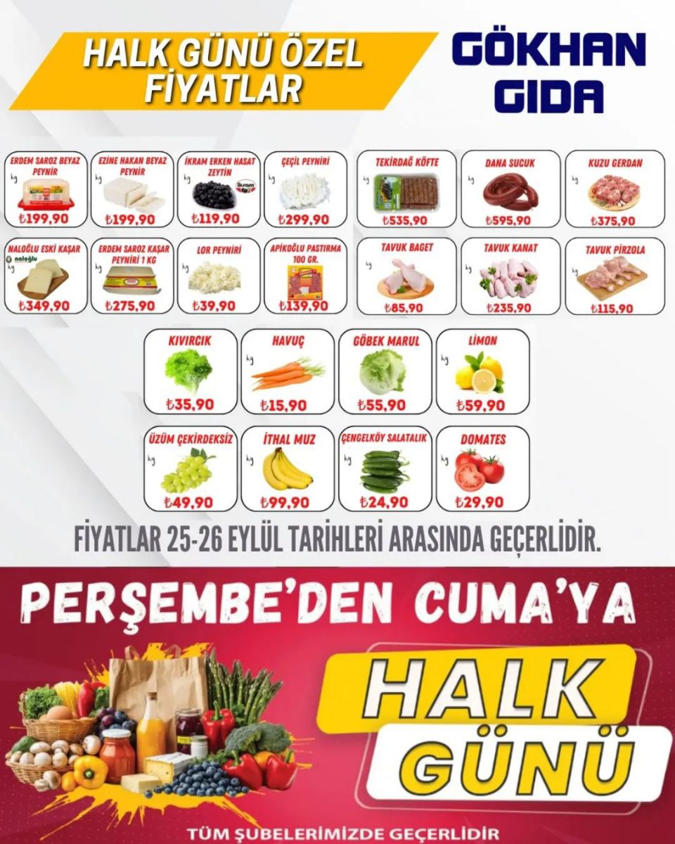 Gökhan Gıda, müşterilerine sunduğu uygun fiyat ve kaliteli ürün anlayışı doğrultusunda, sevilen kampanyası "Halk Günü" ile yine ev bütçelerine katkı sağlıyor. 25-26 Eylül tarihleri arasında geçerli olacak kampanyada, süt ürünlerinden et ve tavuk ürünlerine, taze meyve ve sebzelere kadar birçok kategoride özel fiyatlar sunuluyor.
