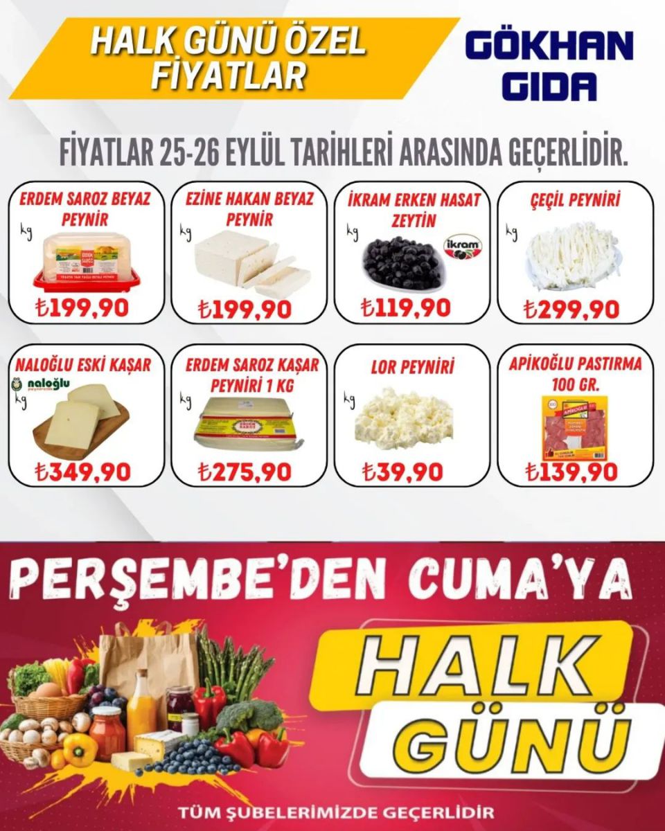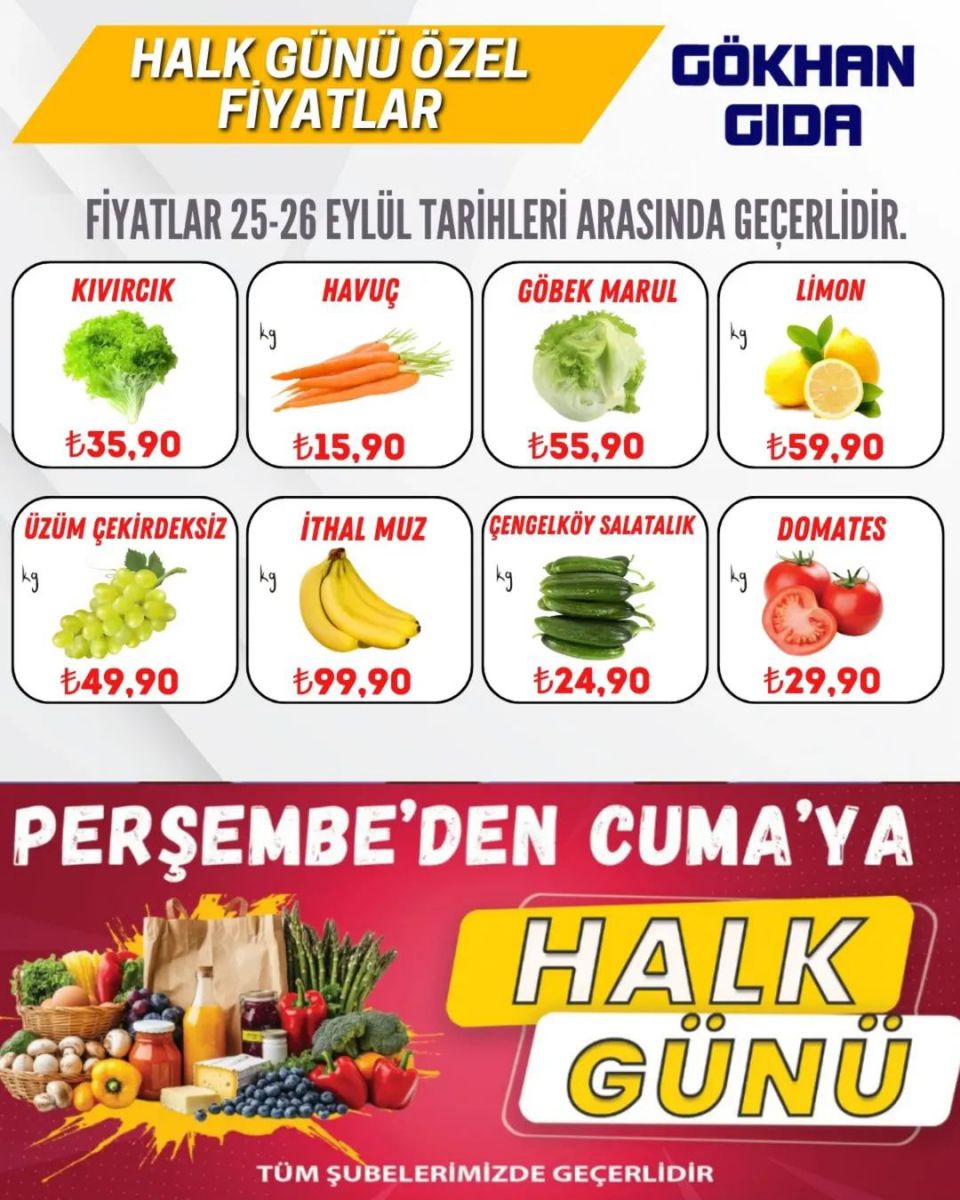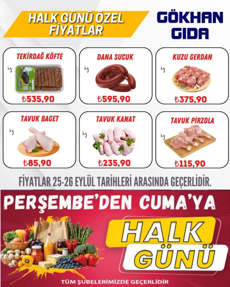 Gökhan Gıda, müşterilerine sunduğu uygun fiyat ve kaliteli ürün anlayışı doğrultusunda, sevilen kampanyası "Halk Günü" ile yine ev bütçelerine katkı sağlıyor. 25-26 Eylül tarihleri arasında geçerli olacak kampanyada, süt ürünlerinden et ve tavuk ürünlerine, taze meyve ve sebzelere kadar birçok kategoride özel fiyatlar sunuluyor.
