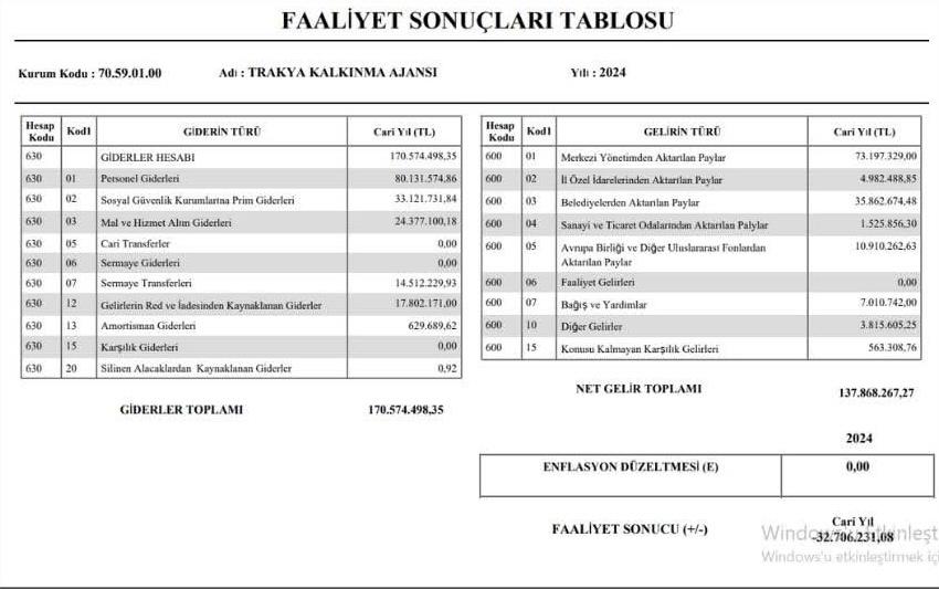 Ajans aynı yıl 174 milyon 574 bin TL harcama yaparak yılı 32 milyon 706 bin TL açıkla kapattı.