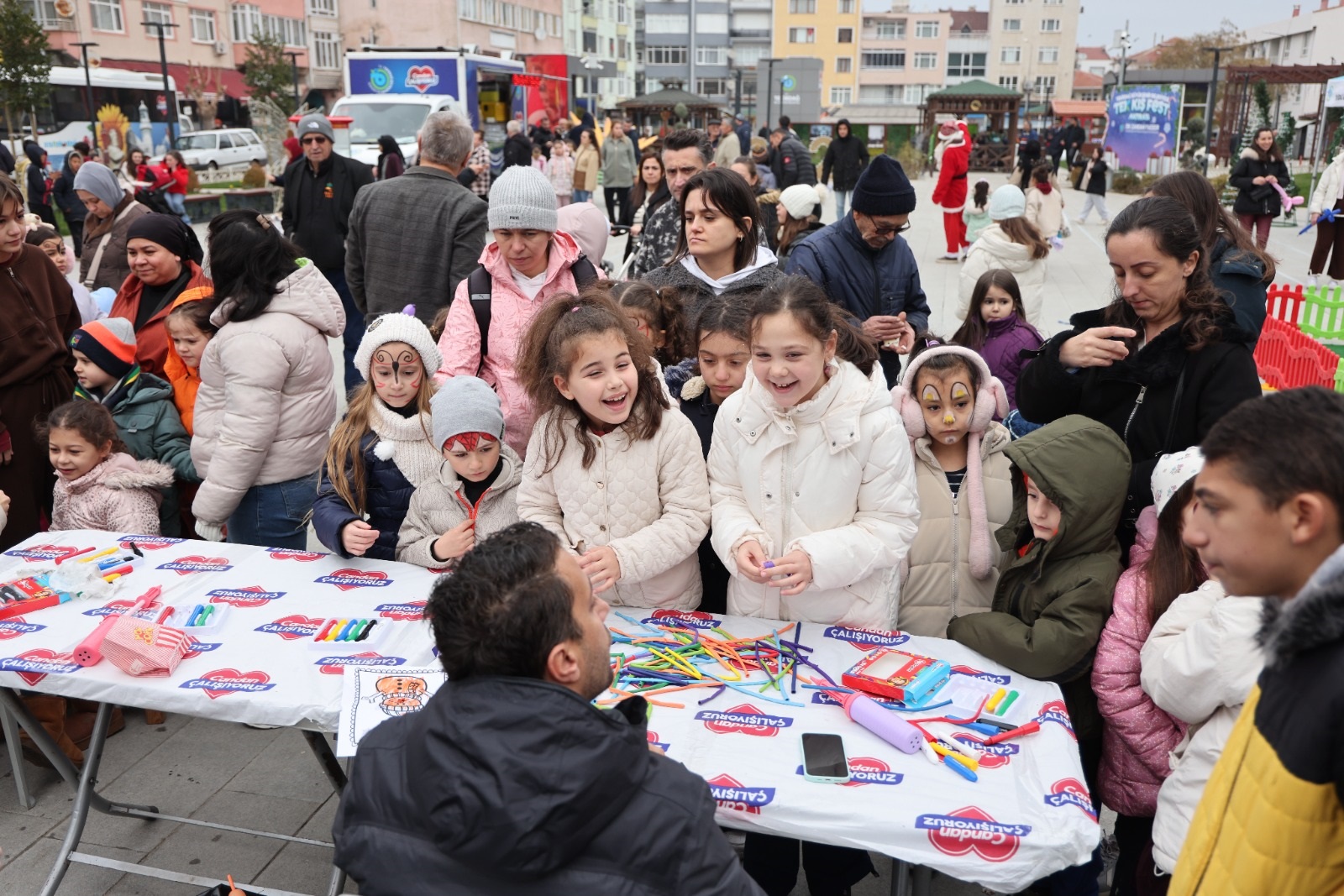 Festival alanlarında çocuklar için boyama atölyeleri düzenlenirken, popcorn ve pamuk şekeri ikramları yapıldı. Kadınların el emeği ürünleri ile yılbaşı temalı hediyelik eşya stantları da vatandaşların beğenisine sunuldu.