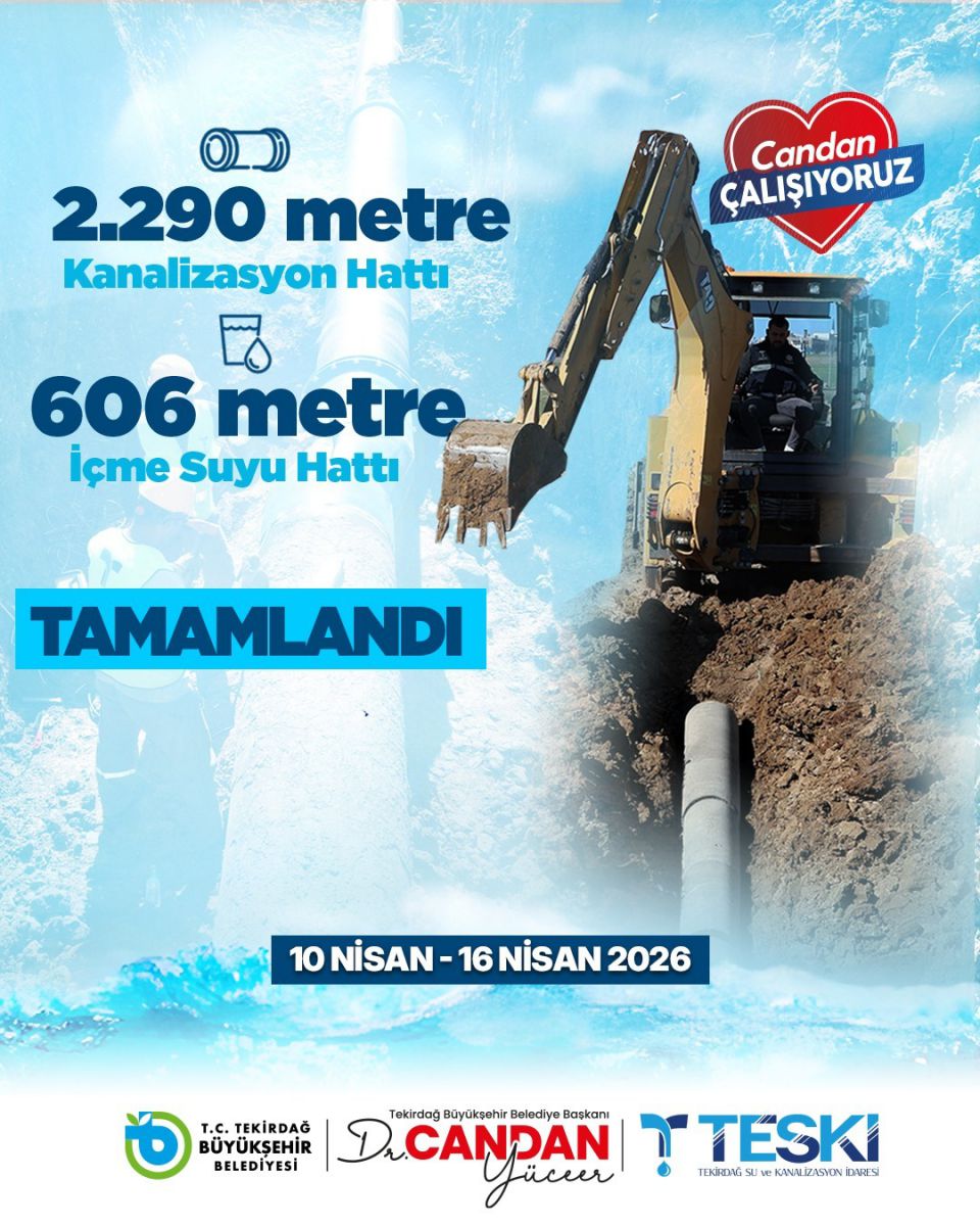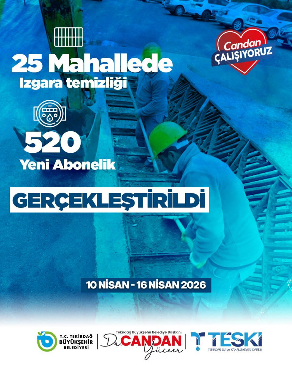 Tekirdağ Su ve Kanalizasyon İdaresi (TESKİ) ekipleri, 10 Nisan – 16 Nisan 2026 tarihleri arasında, il genelinde altyapıyı güçlendirmek, su kaynaklarını korumak ve vatandaşlarımıza kesintisiz hizmet sunmak için yine sahadaydı.